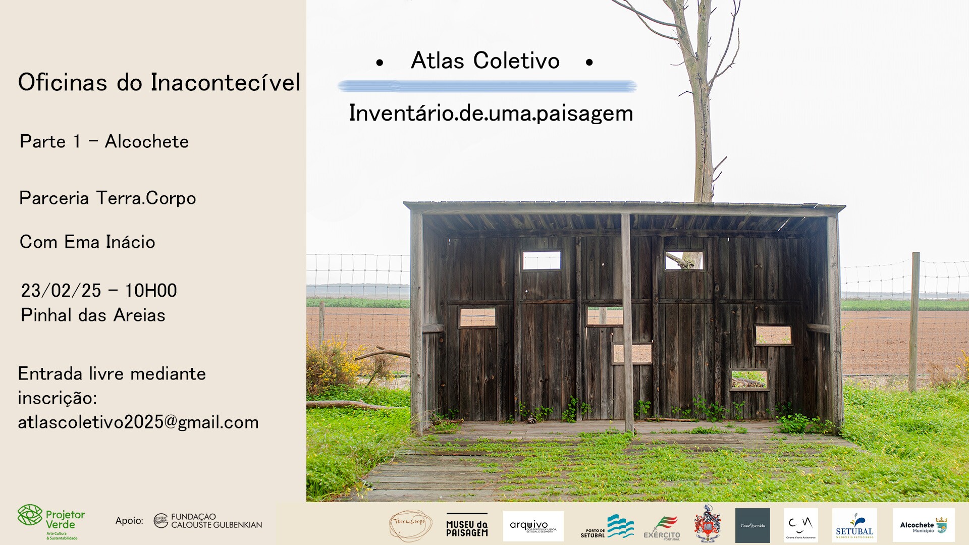 As Oficinas do Inacontecível surgem da parceria com o projeto de criação artística Atlas Coletivo - Inventário de uma paisagem, enquanto práticas coletivas de literacia e de cidadania da paisagem, bem como de intervenção artística participada com a comunidade.
