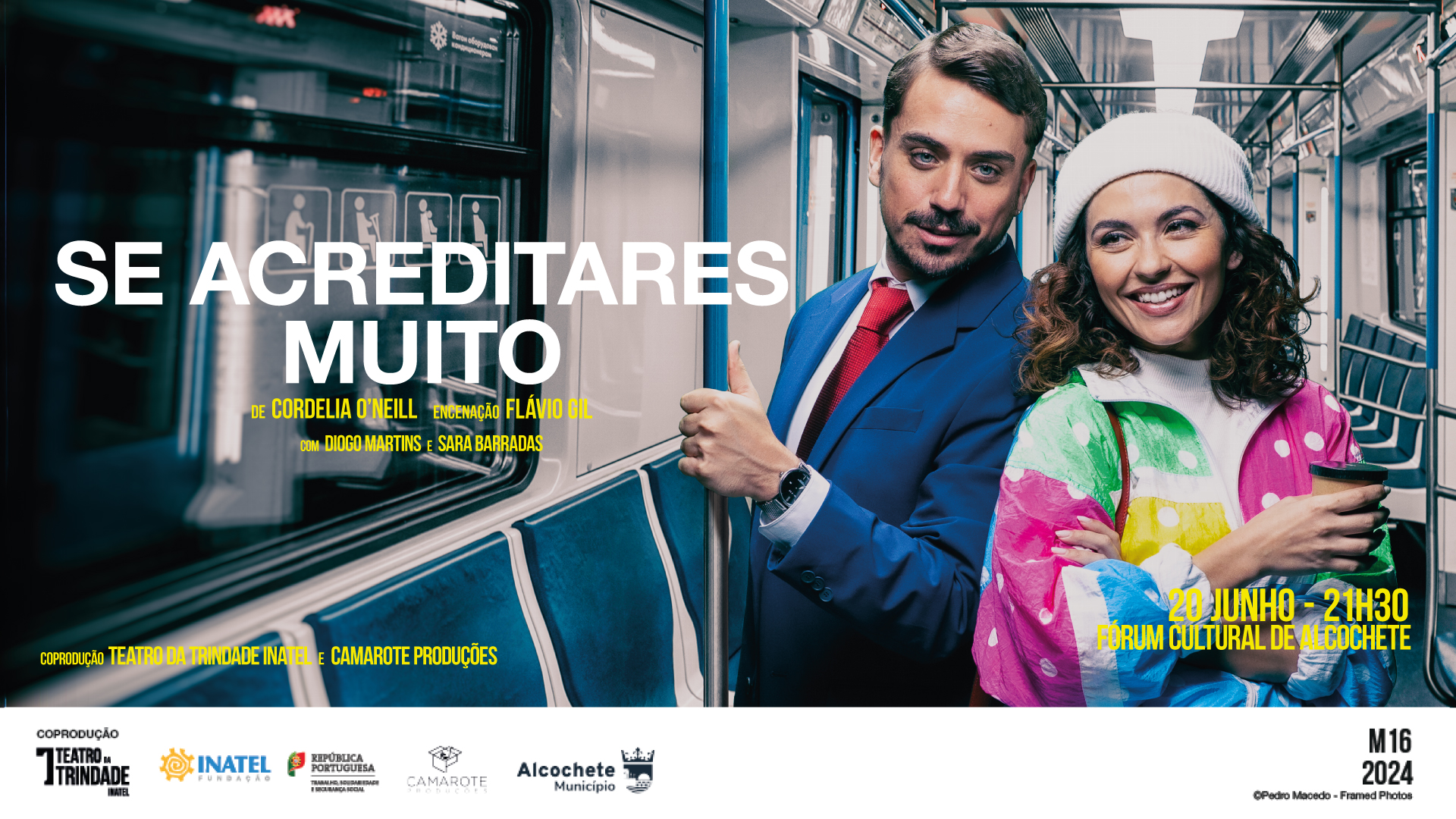 “Se acreditares Muito” com Sara Barradas, Diogo Martins e encenação de Flávio Gil, sobe ao palco do Auditório Maestro António Menino a 20 de junho.